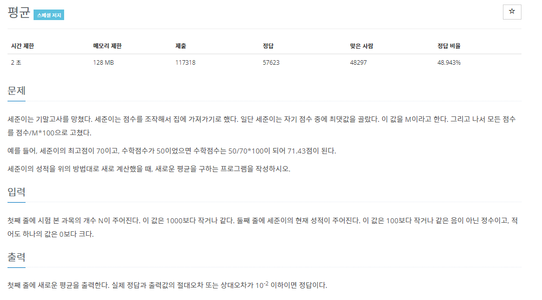 | [백준 알고리즘] 4344번 Python (0) | 2021.10.03 |