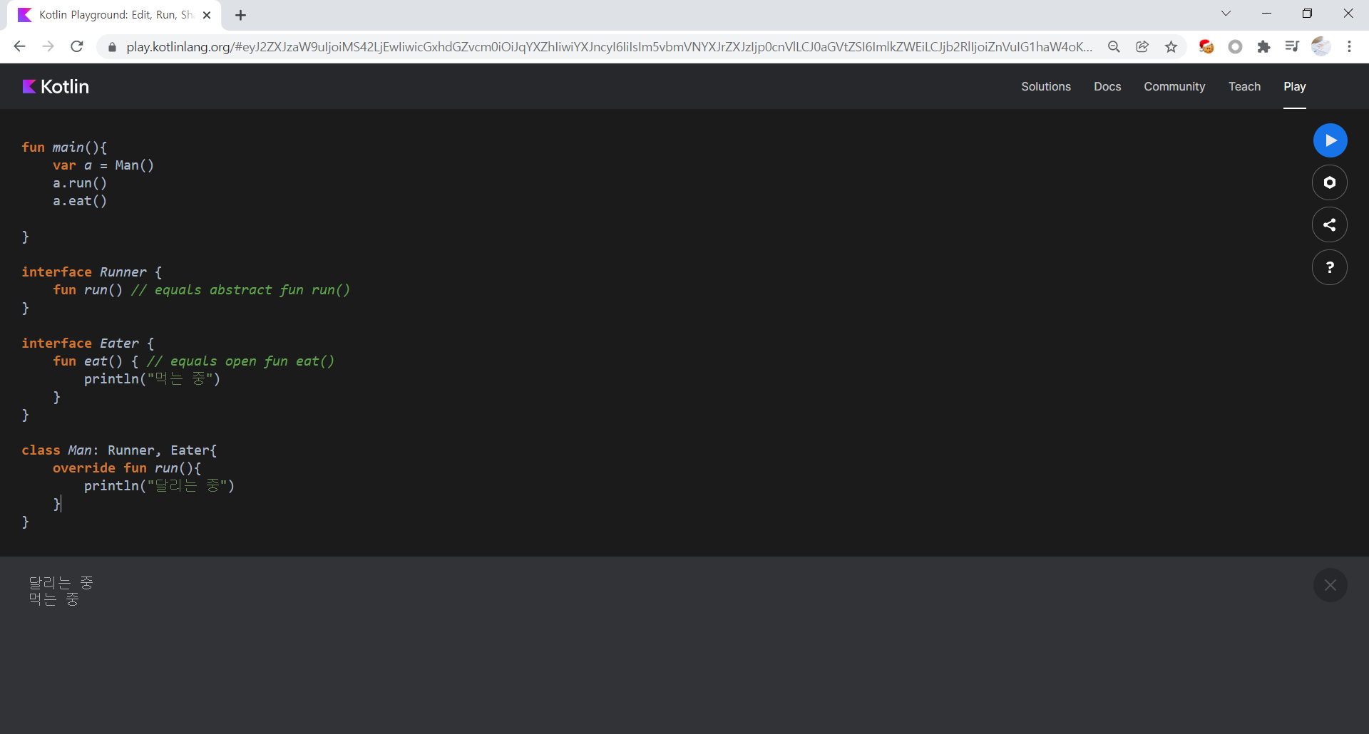 abstract, open 등과 같은 키워드를 사용하지 않더라도 추론을 통해 자동 적용되며, 한 번에 여러 인터페이스를 상속 시킬 수 있음.