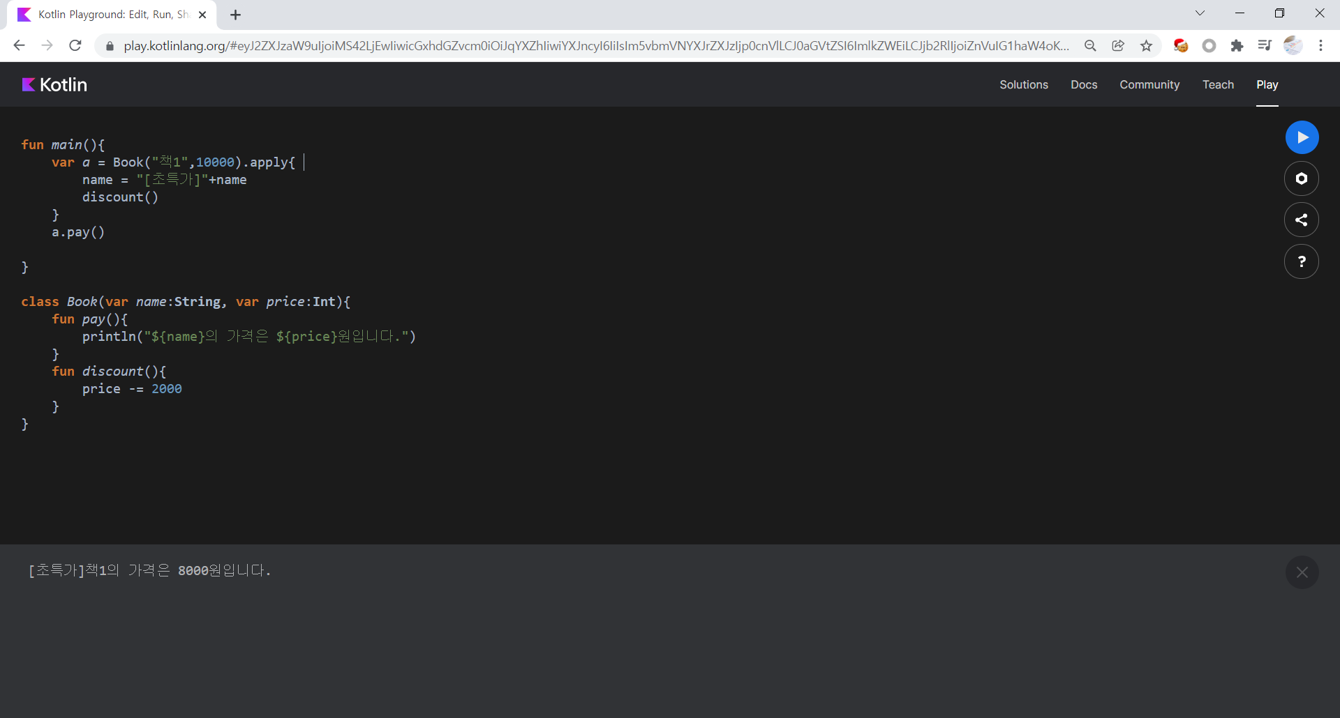 스코프 함수의 경우 별도의 Scope에서 인스턴스의 변수와 함수를 조작할 수 있음. (apply, run, with, also, let)