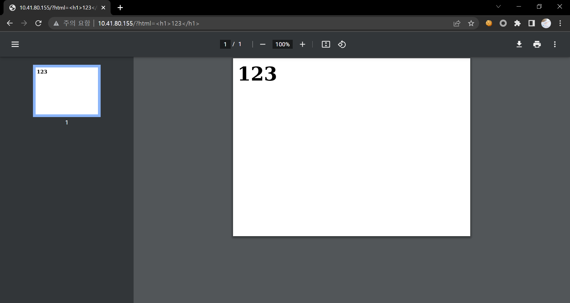특정 페이지 내 코드가 HTML로 렌더링 되어 PDF로 반환되는 페이지가 있습니다. 만약 사용자 입력 값을 해당 페이지에 삽입할 수 있고 HTML 코드로 인식된다면 해당 취약점은 XSS이면서 SSRF(Sever Side Request Forgery)가 될 수 있습니다. 그리고 이러한 취약점을 Server Side XSS라고 부릅니다.