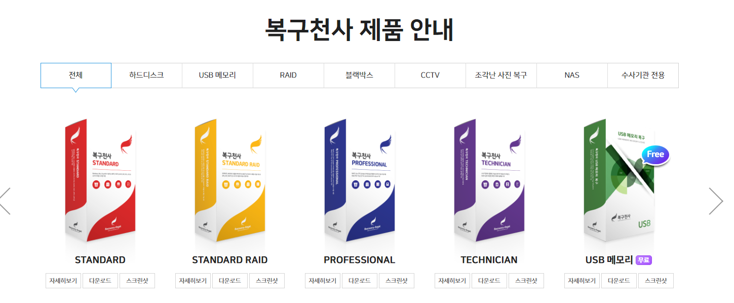 복구천사 데이터복구 소프트웨어는 논리 장애가 발생된 증상을 복구하는 데이터복구 프로그램으로 하드디스크, USB, NAS, 서버 (RAID)를 지원합니다.