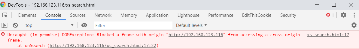 지금 작성한 PoC 코드에는 SOP가 발생하면 XS Search 공격이 정상적으로 실행되지 않는 문제점이 존재합니다.