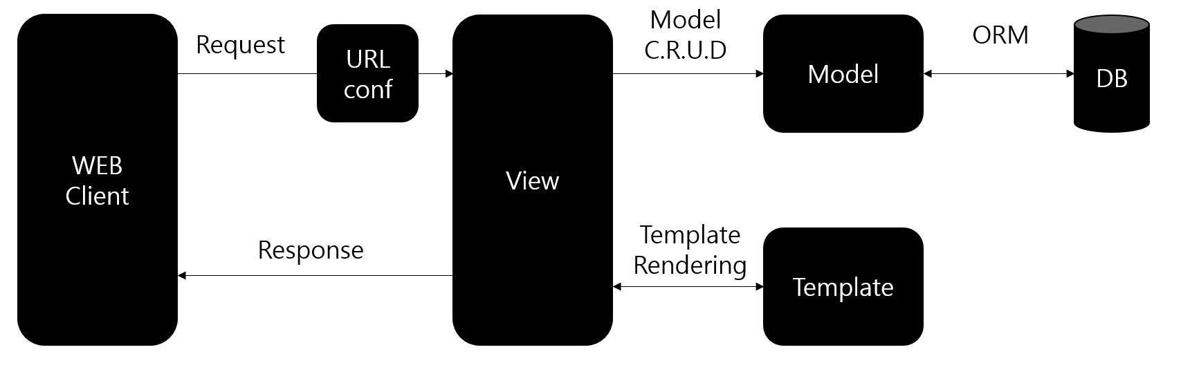 | 번호 | MVT(Model-View-Template) 패턴 | MVC(Model-View-Controller) 패턴 |