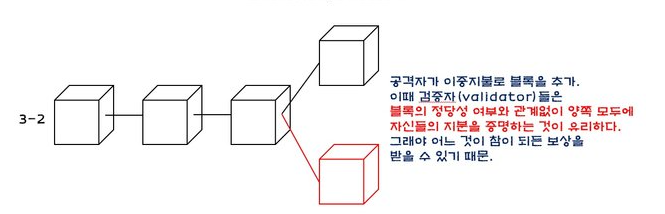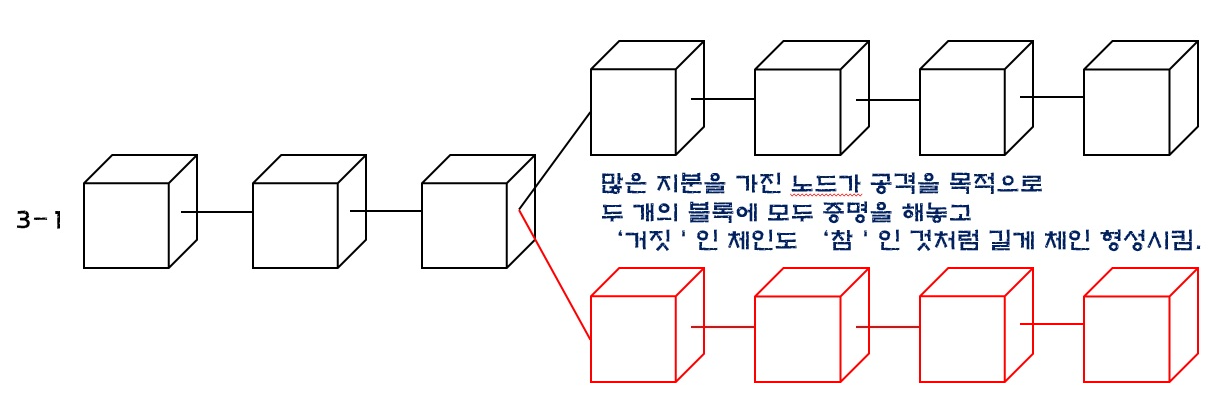 또한, 한계비용(지분을 증명하는데 필요한 생산 비용)이 없기 때문에 Noting at Stake, Long Range Attack 등의 공격이 발생할 가능성이 있습니다.