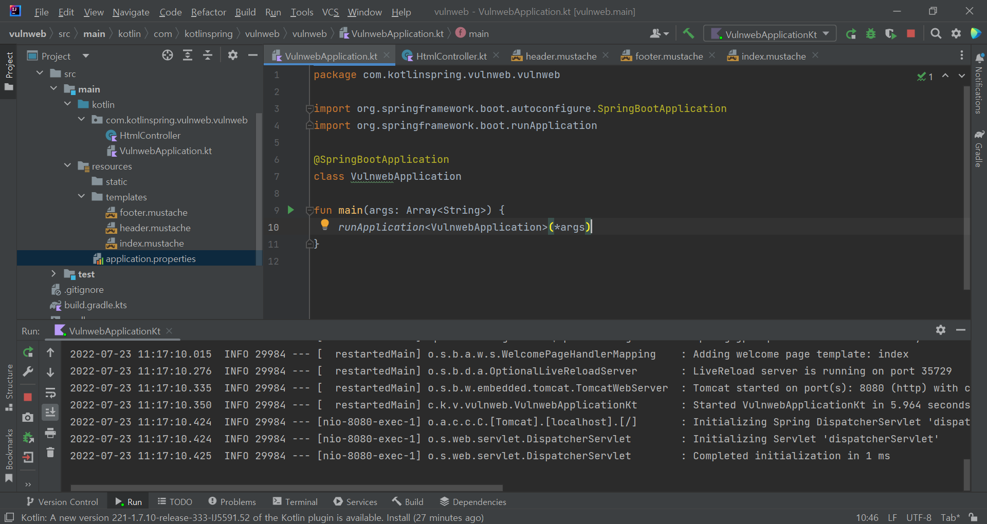 Dependencies : Spring Web, Mustache, Spring Data JPA, Spring Boot DevTools, H2 Database