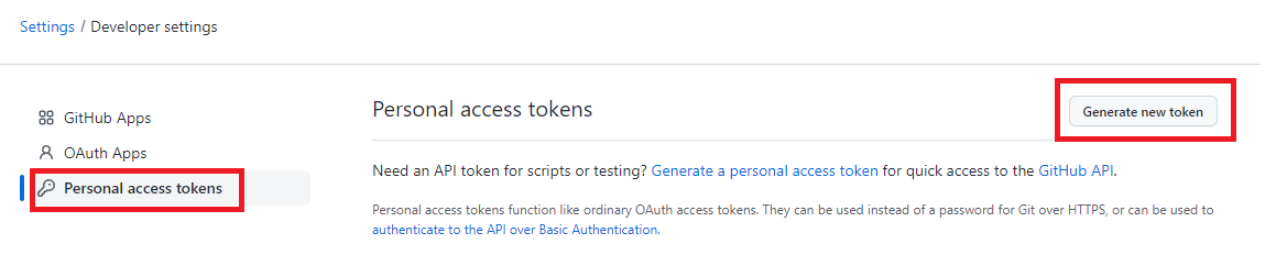 2. Personal Access Tokens -> Generate new token 클릭