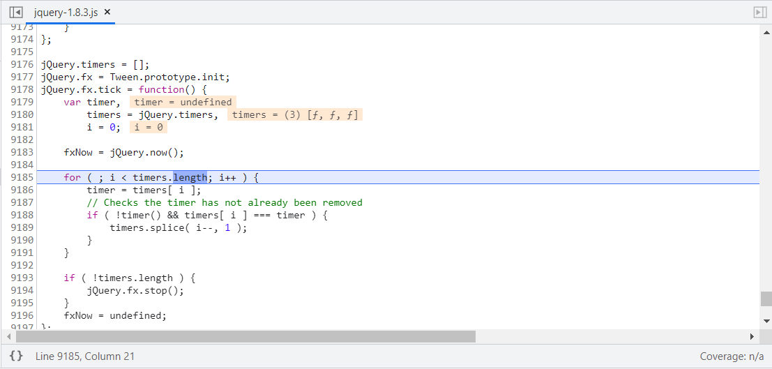 Chrome에서 취약점 진단을 위해 Debugging 기능을 사용하였을 때 jquery*.js 파일에서 무한으로 디버깅이 멈추는 현상이 발생했습니다.