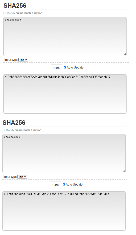 그리고 또 다른 주요 특징으로 "입력 값이 조금이라도 변경된다면 출력 값이 크게 달라진다"는 특징도 가지고 있습니다.