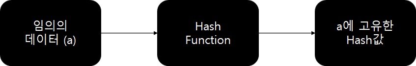 Hash 함수란 임의의 길이를 갖는 데이터를 입력할 경우 고정된 길이의 고유한 데이터로 매핑되는 함수를 의미합니다. 그리고 특정 입력 값에 매핑되는 특정 출력 값을 바로 Hash 라고 합니다.