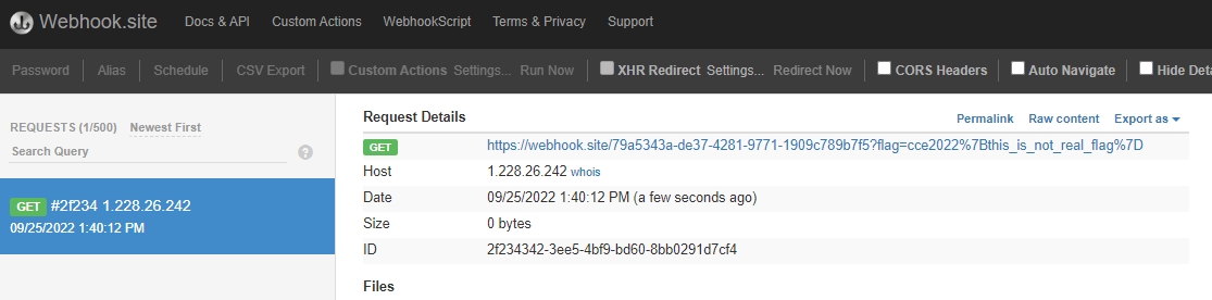 4. Payload를 아래와 같이 구성하여 webhook.site에 flag를 전송하도록 함으로써 Flag를 획득할 수 있었습니다.