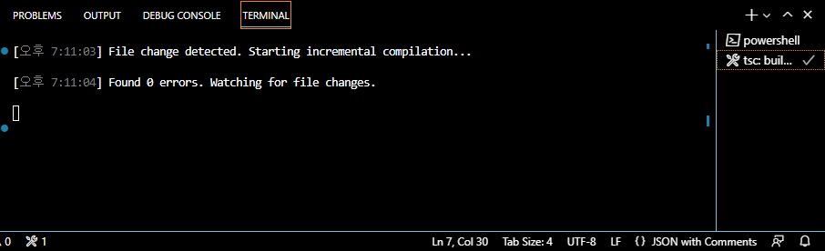 이후 Ctrl + Shft + B(⇧⌘B)를 누를 경우 정상적으로 Build가 수행되면서 .js 파일과 .js.map 파일이 생성됩니다.