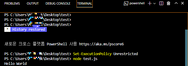 그리고 Terminal에서 node를 이용하여 Compile된 .js 파일을 실행하면 결과를 확인할 수 있습니다.