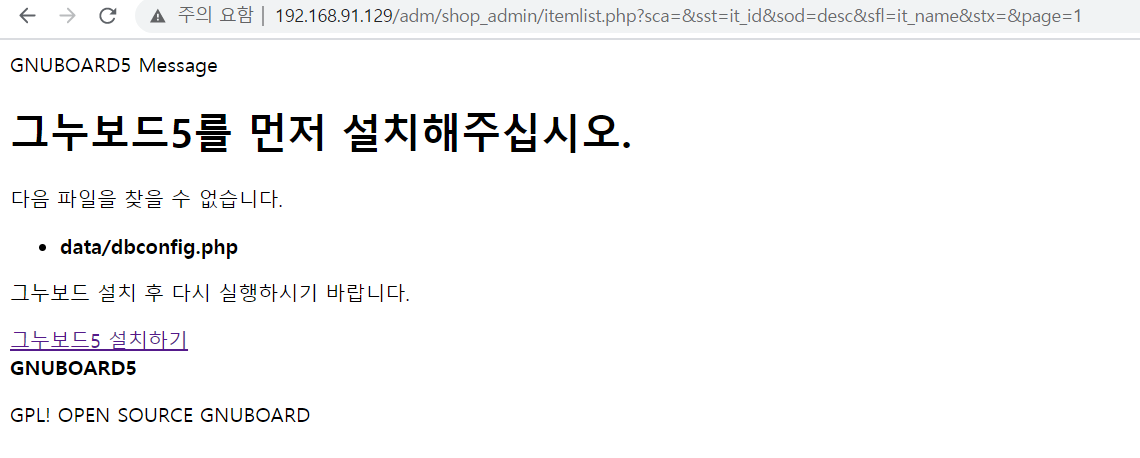(dbconfig.php 파일을 삭제할 경우 그누보드, 영카트를 재설치할 수 있으며, 인스톨 페이지에서 Command Injection 취약점이 발생하였습니다.)