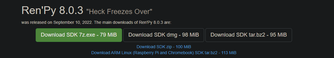 1. Ren'Py 사이트에서 개발 도구를 다운로드 받습니다.