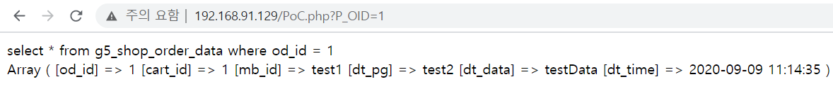 + $sql = " select * from {$g5['g5_shop_order_data_table']} where od_id = '$P_OID' ";
