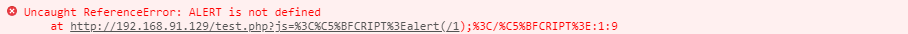 그런데 strtoupper()와 같은 함수는 대문자로 치환해주기때문에 단순히 alert(1);를 입력하는 것으로는 XSS 취약점이 발생하지 않았습니다. 왜냐하면 알림 창을 띄우는 함수는 alert이지 ALERT이 아니기 때문입니다.