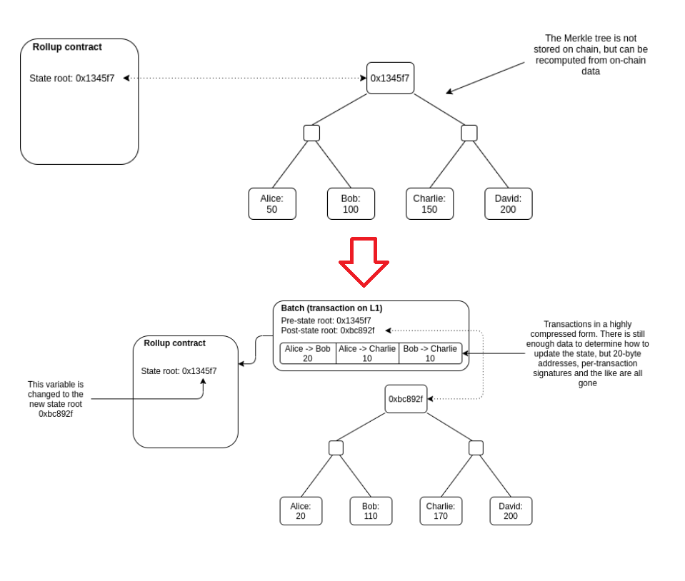 Ethereum Chain을 개발한 Vitalik Buterin은 롤업의 작동 방식을 아래와 같이 설명하고 있습니다.