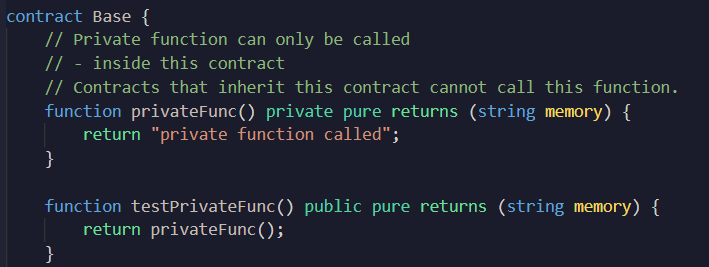 function privateFunc() private pure returns (string memory) {