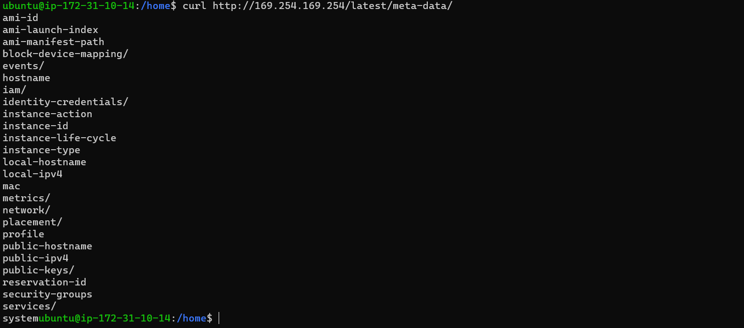 $ curl -H "X-aws-ec2-metadata-token: $TOKEN" http://169.254.169.254/latest/meta-data/