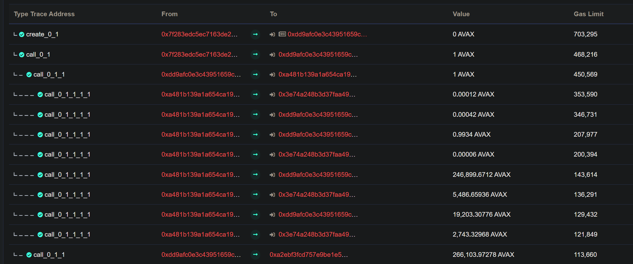 - 공격자의 Smart Contract로 0.00042 AVAX 전송