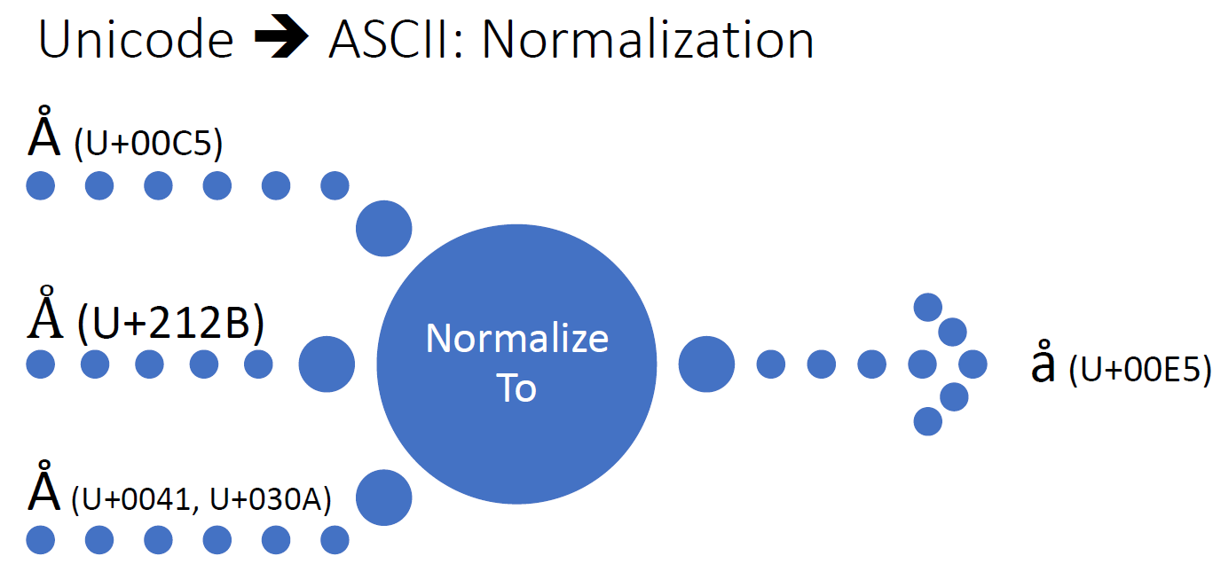 여러 형태의 값을 하나의 값으로 변경시켜주는 단계로써 수 많은 Unicode를 표준화하는 작업입니다.