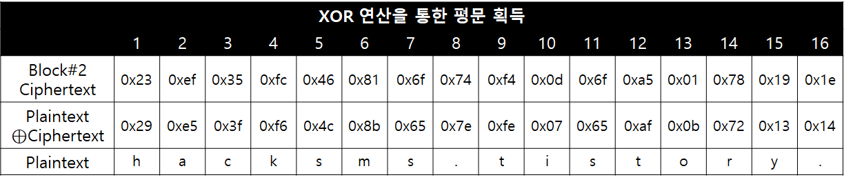 동일한 방식으로 모든 Plaintext ⊕ Ciphertext 값을 구할 수 있습니다.