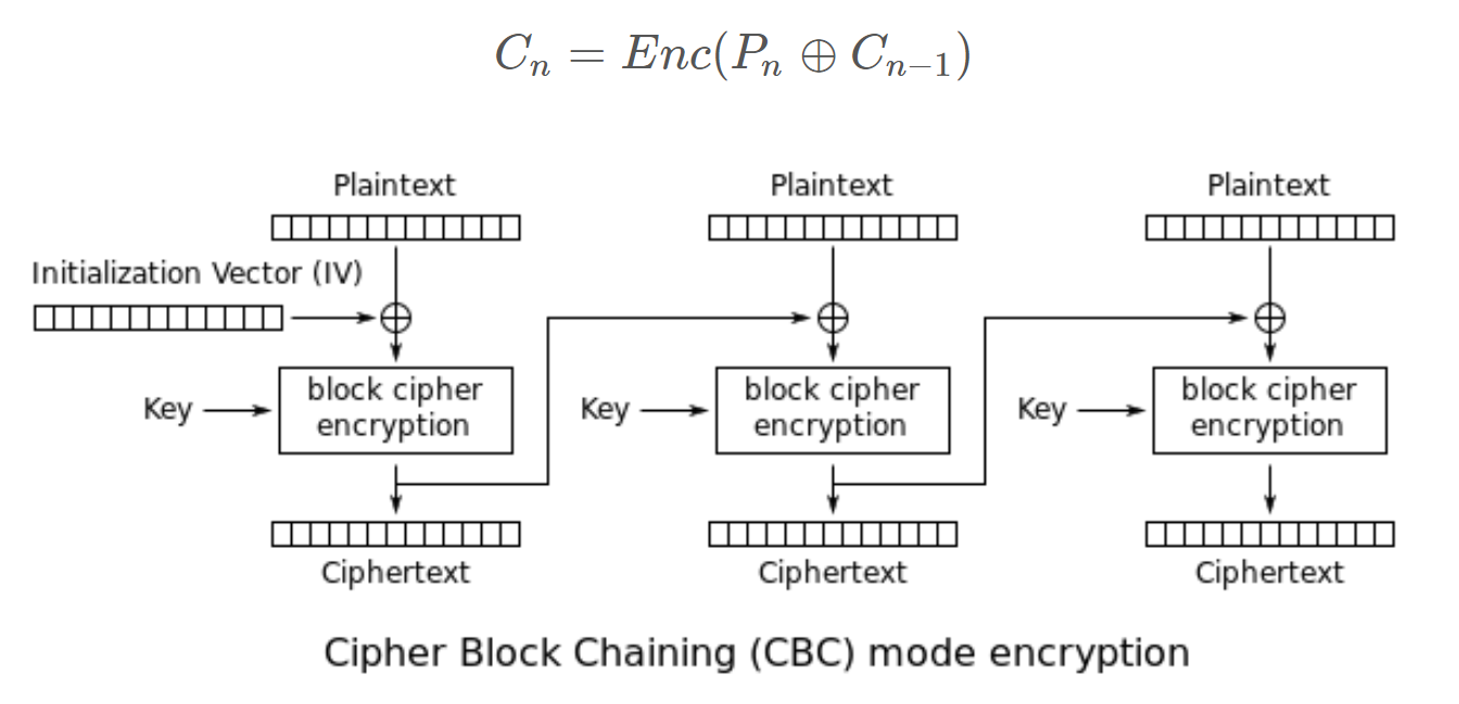 (첫 번째 블록을 제외한 나머지 블록들은 이전 블록의 암호문을 이용하여 평문을 XOR 연산하는데, 이 과정이 매우 중요한 부분입니다.)