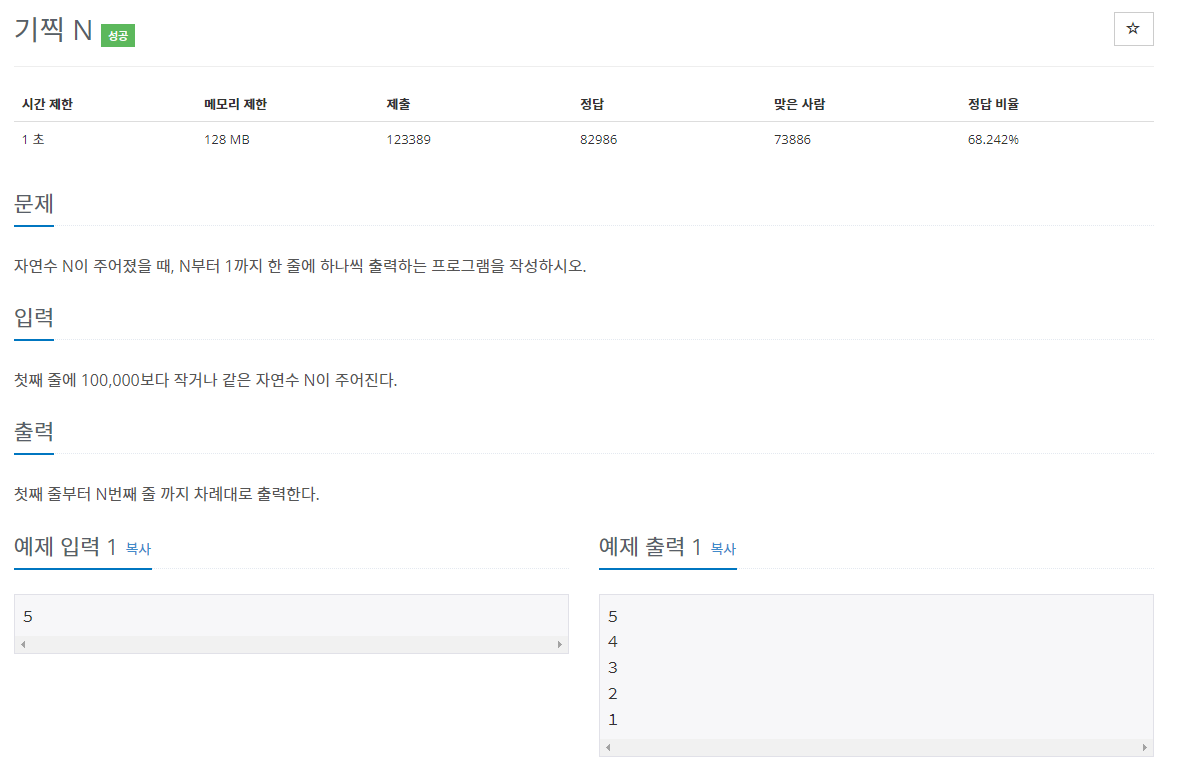 | [백준 알고리즘] 2741번 Python (0) | 2021.10.03 |